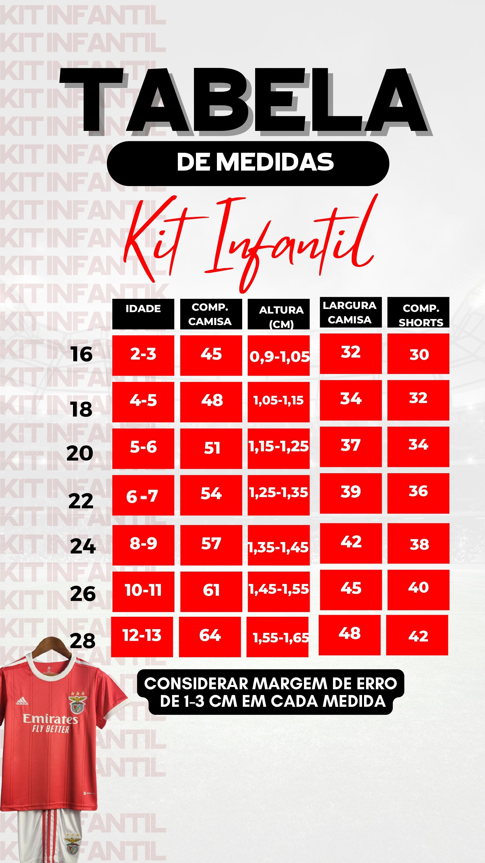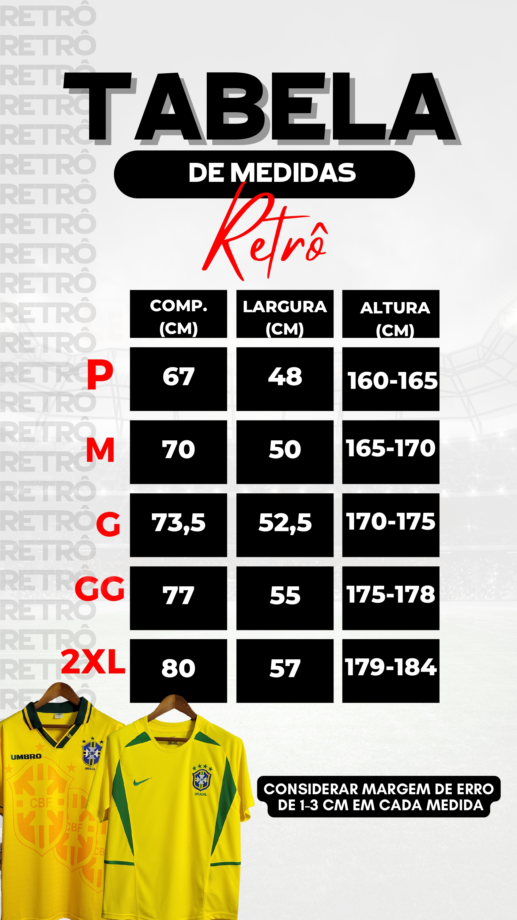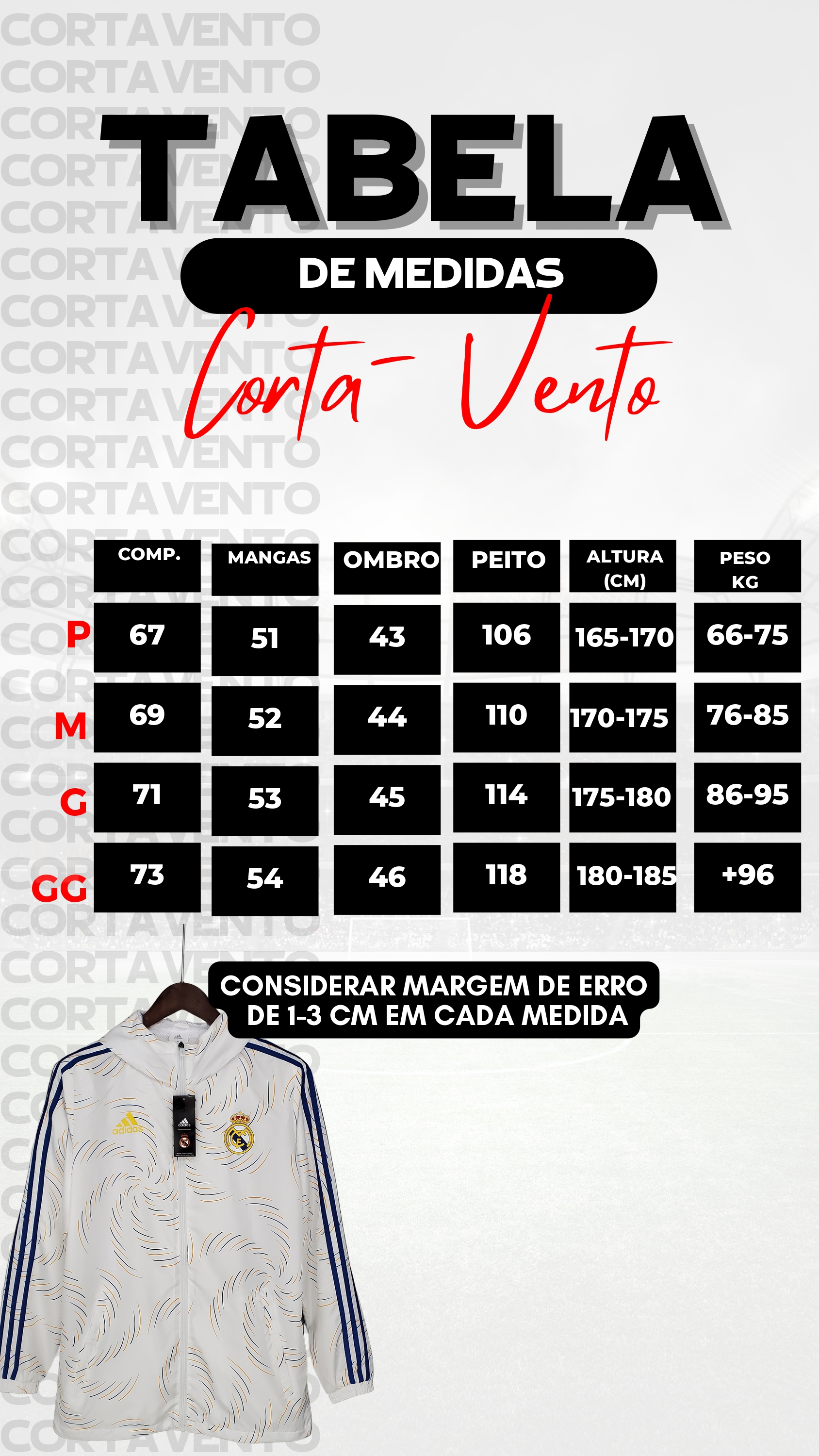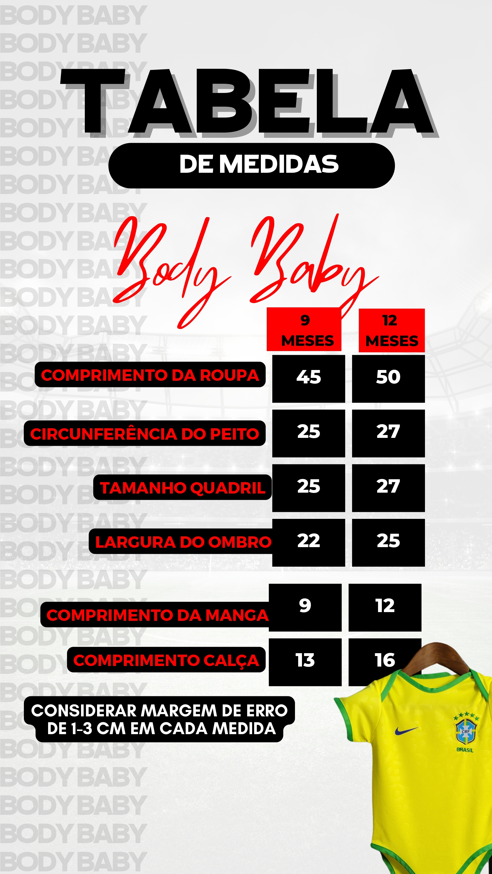 Lembrando que tem sempre uma variação de 1-3 cm por medida.