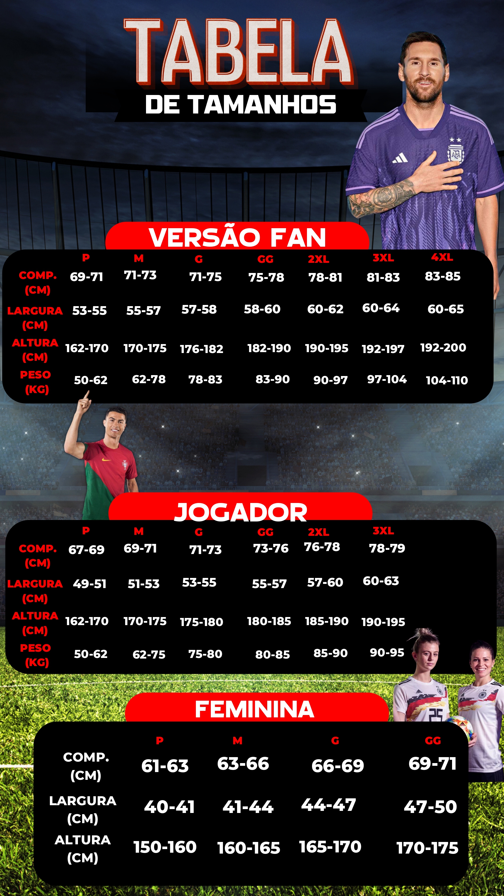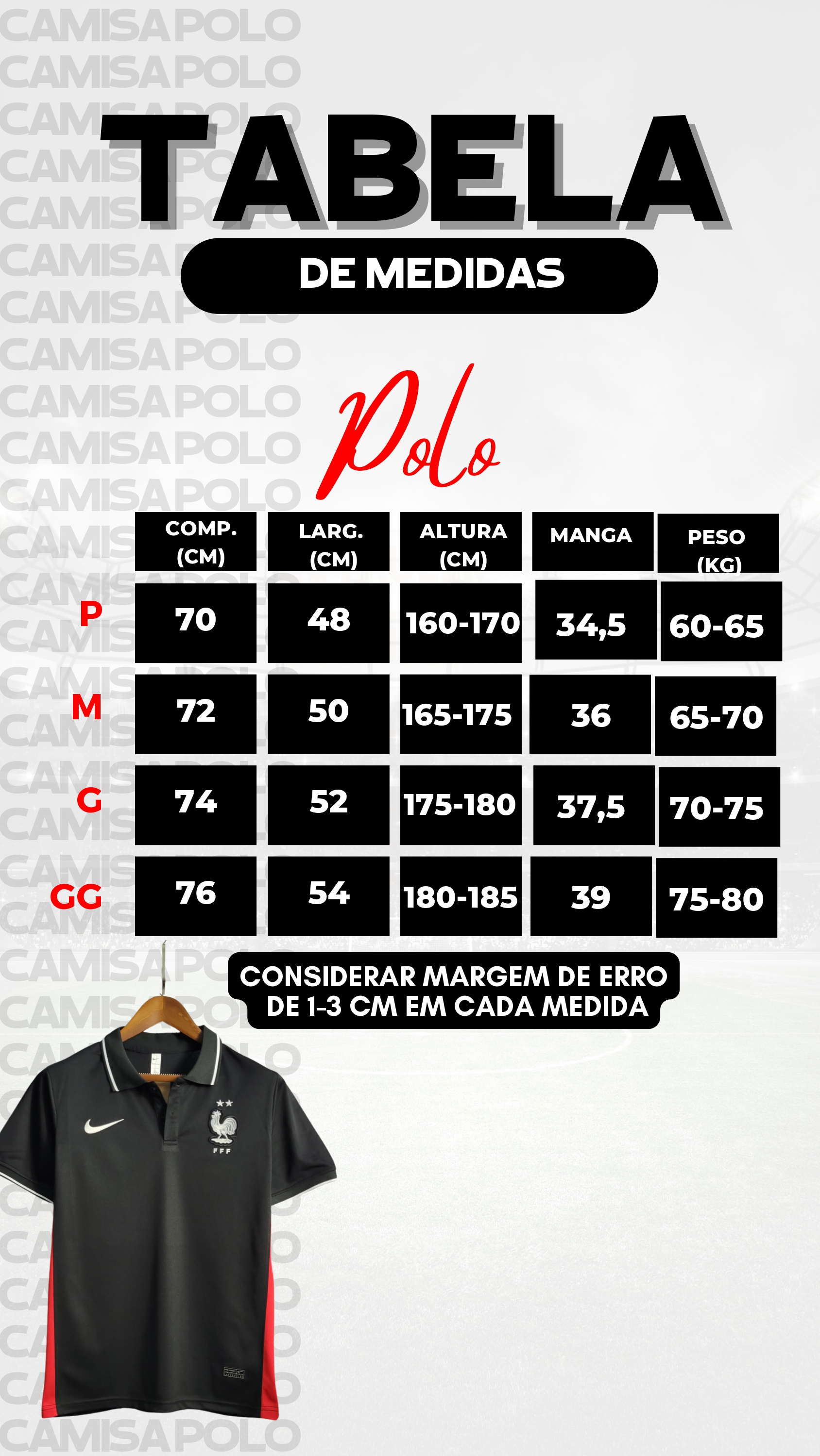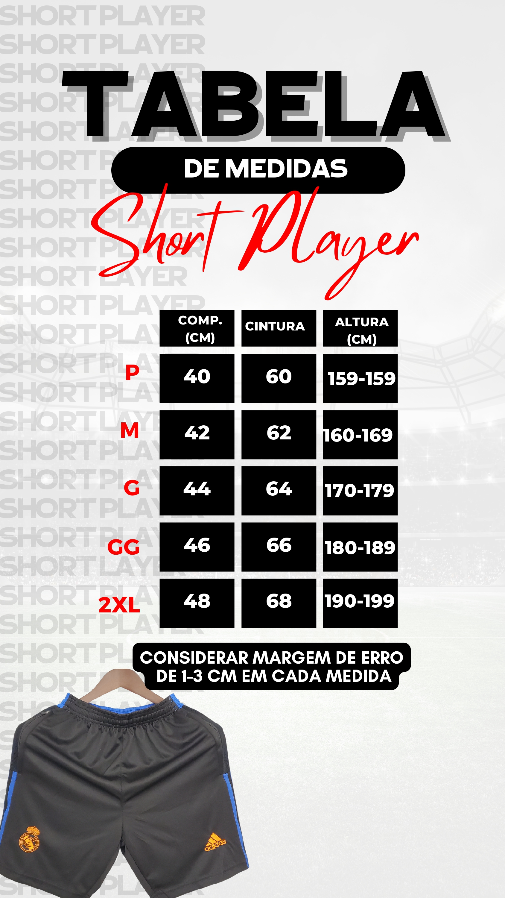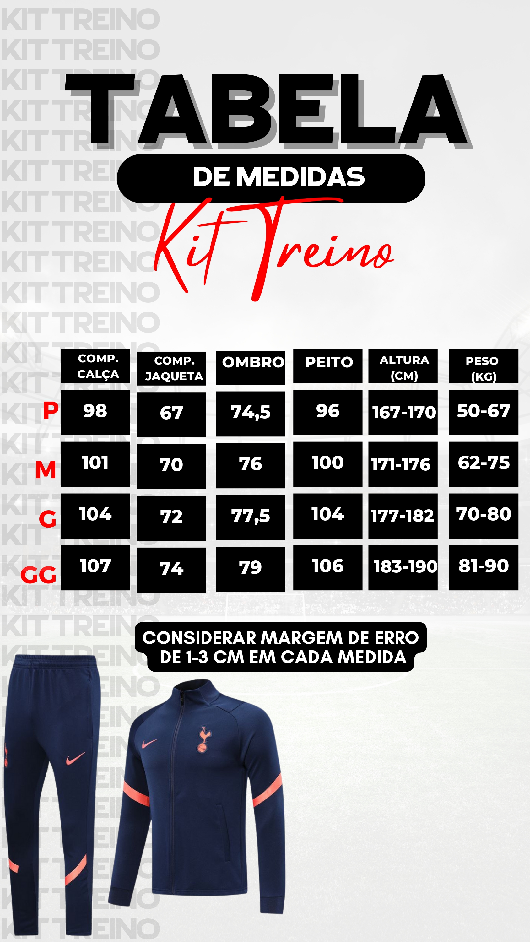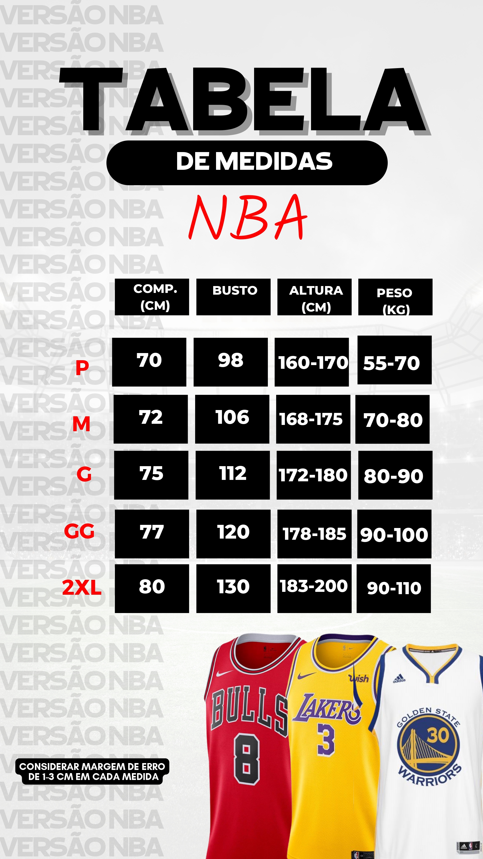 Lembrando que tem sempre uma variação de 1-3 cm por medida.